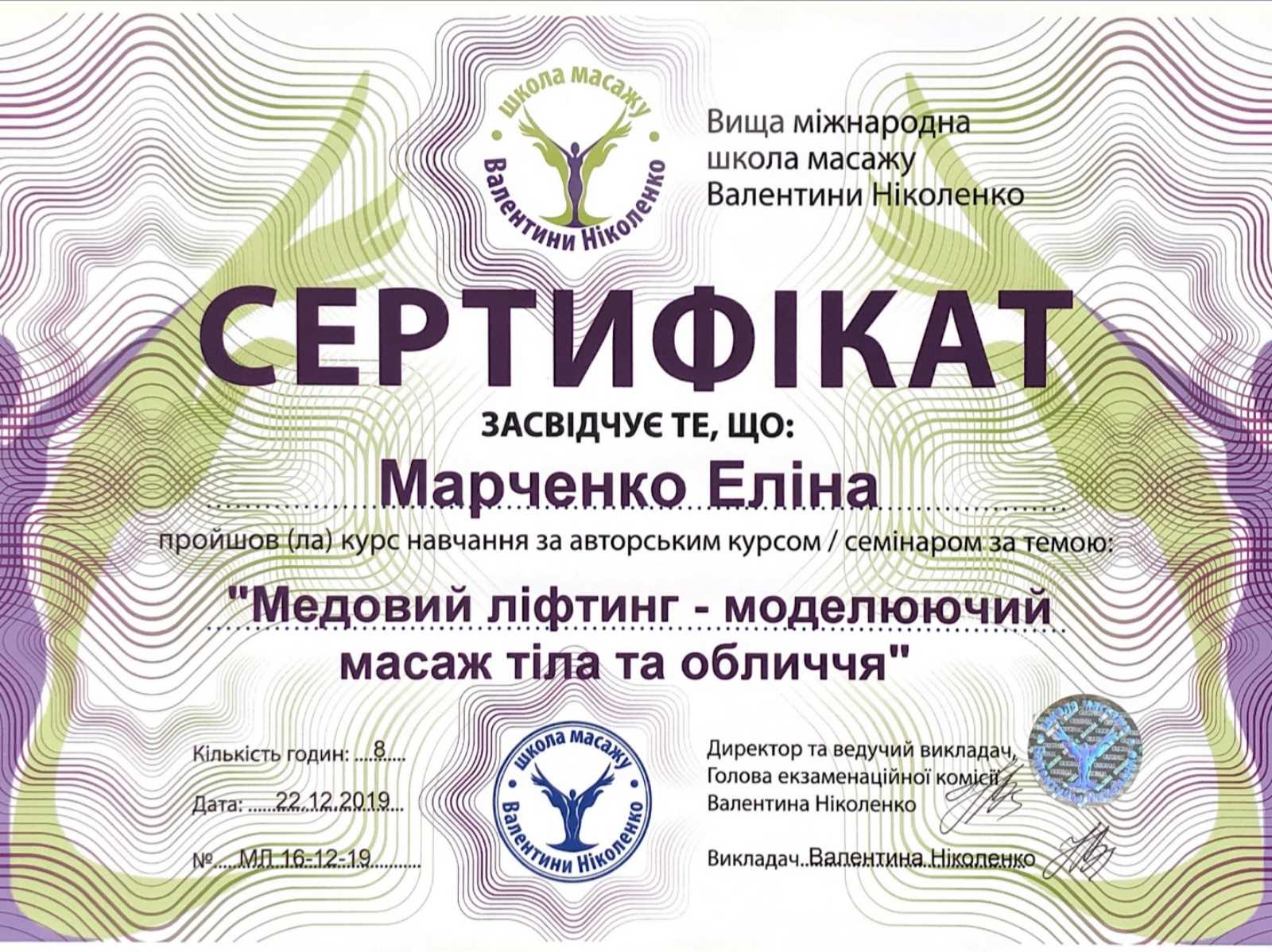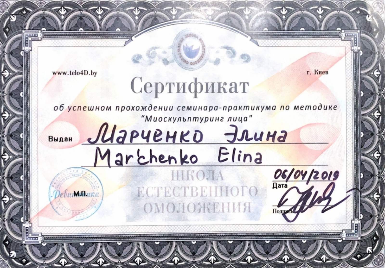 Сертифицированный специалист по эстетике лица и тела.