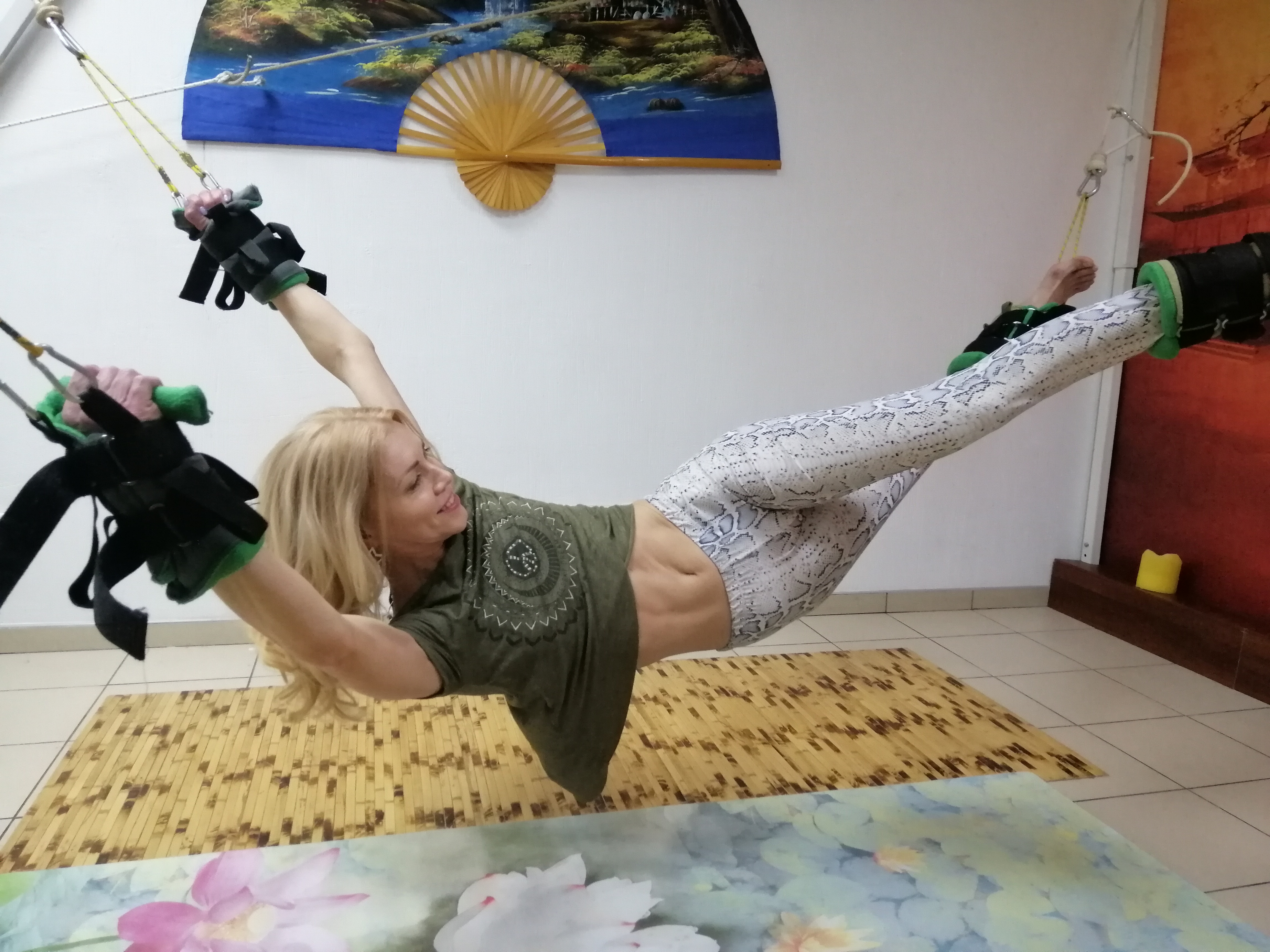 Во время занятий позвоночник растягивается до допустимо здорового состояния, при этом увеличиваются межпозвонковые промежутки. Это позволяет уменьшить давление в позвоночных дисках и способствует их быстрой регенерации. Также, за счет растяжки, увеличивается приток крови к глубоким околопозвоночным структурам – связкам и мышцам, формирующим силовой каркас позвоночника, достигается стройность фигуры.